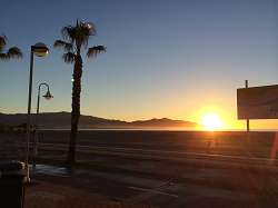 | Ein super Sonnenaufgang verspricht einen wunderschönen Tag - also golfen. Heute wollen anscheinend alle spielen. Wir versuchen eine Startzeit zu bekommen - schwierig - also erst zwei Stunden auf die Drivingrange. Dann spielen wir mit zwei Belgiern eine sehr entspannte Runde, heute mit traumhafter Sicht auf die Sierra Nevada. |