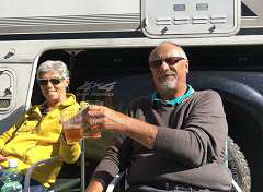 | Nach der halben Runde ein Cerveza auf der Terrasse und die Sonne genießen. Leider dürfen wir nicht auf dem Parkplatz übernachten. Deshalb fahren wir ein paar Kilometer weiter zum SP La Finca, hat nichts mir einer Finca zu tun, aber für eine Nacht mal ok. |