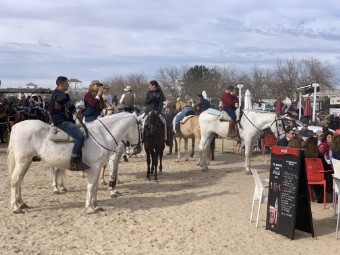 Dieses Jahr lassen wir die Plätze um Novo Santi Petri erst mal aus und fahren nach El Rocio in die Donana. Sehr schön hier ist heute richtig was los. Dieser einer Westernstadt nachempfundene Ort hat nur Sandstrassen. Hier bewegt sich heute fast alles mit Kutschen und Pferden. Man muß nicht mal vom Pferd steigen um einen Drink zu nehmen.