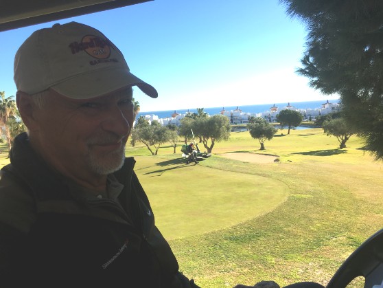Wieder strahlender Sonnenschein, na dann auf zum Marinagolf Mojacar. Am ersten Abschlag steht ein einzelner Engländer, den nehmen wir mal mit. Es ist immer wieder schön hier zu spielen. Leider hat das Restaurant scheinbar endgültig geschlossen, es gibt leider nicht mal ein Bier - schade.